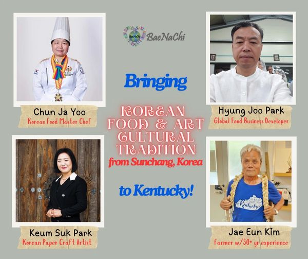 This is a multi-talented, cross-generational group of family and friends who live in Sunchang and other regions in Korea. They are coming to KY as the goodwill ambassadors of Korean food culture and art tradition as well as friendship.